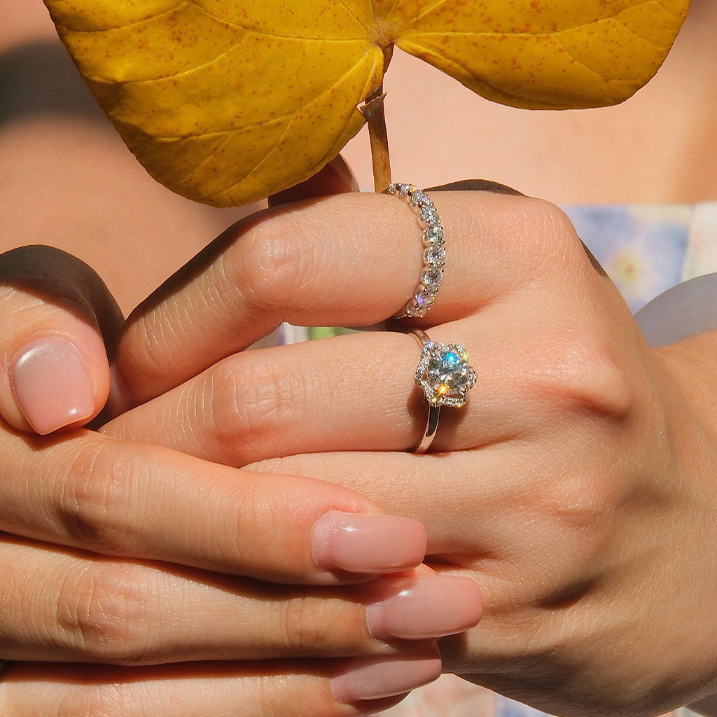 Through extensive testing, we found that E – VS – VG diamonds provide the closest visual match to natural diamonds. The slightly warmer color and softer brilliance mimic what you'd expect from high-end natural stones—without looking overly “perfect” or glassy like many lab-grown diamonds.