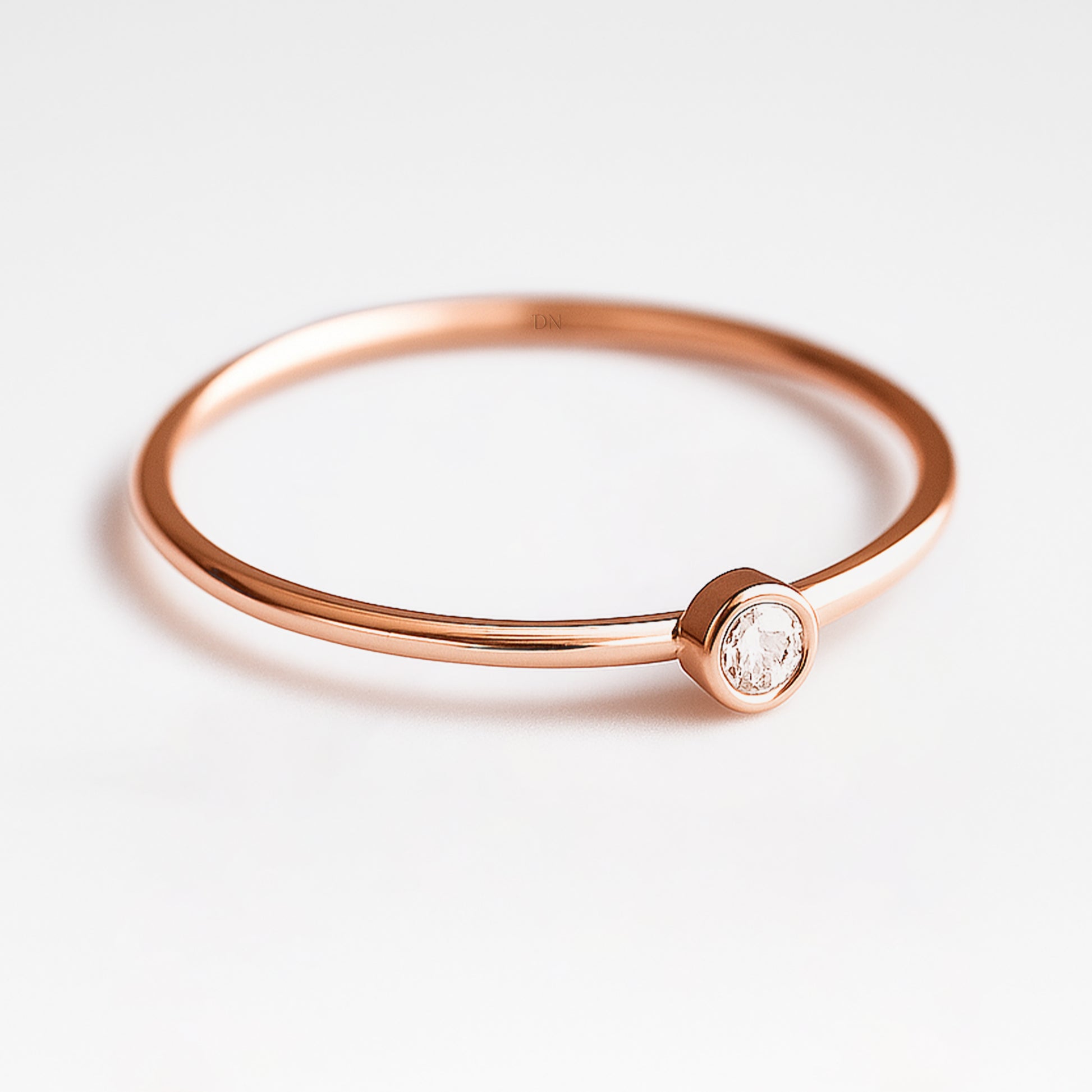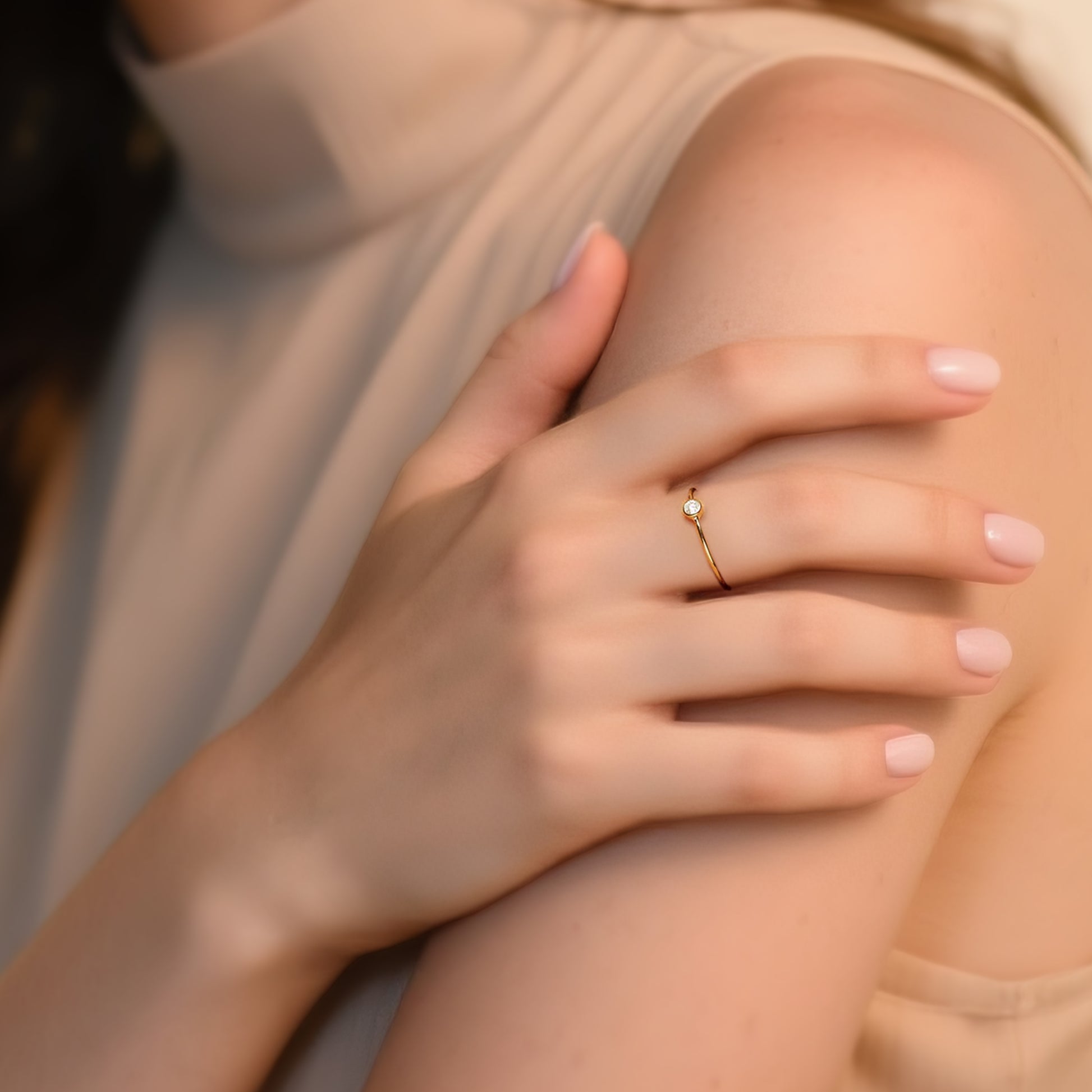 Keeva Round Cut Petite Solitaire Lab Grown Diamond Ring. Minimal and refined, the Keeva ring showcases a round cut lab grown diamond on a slim, graceful band. Its clean design puts the focus on the diamond’s brilliance, making it a versatile piece for everyday wear or meaningful moments.