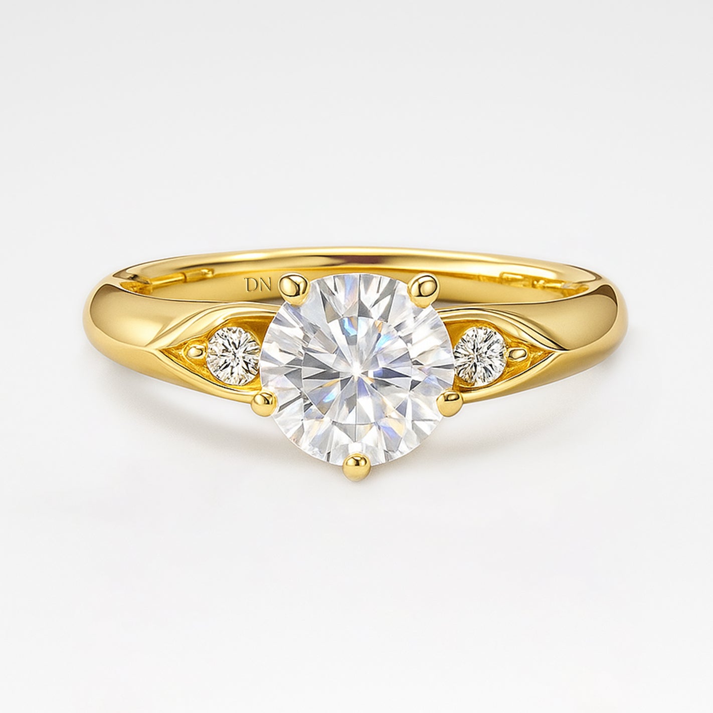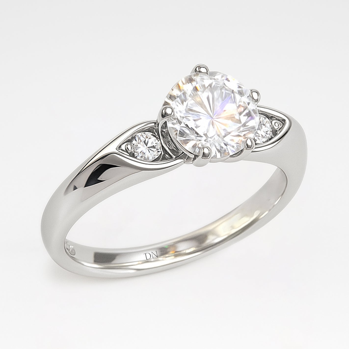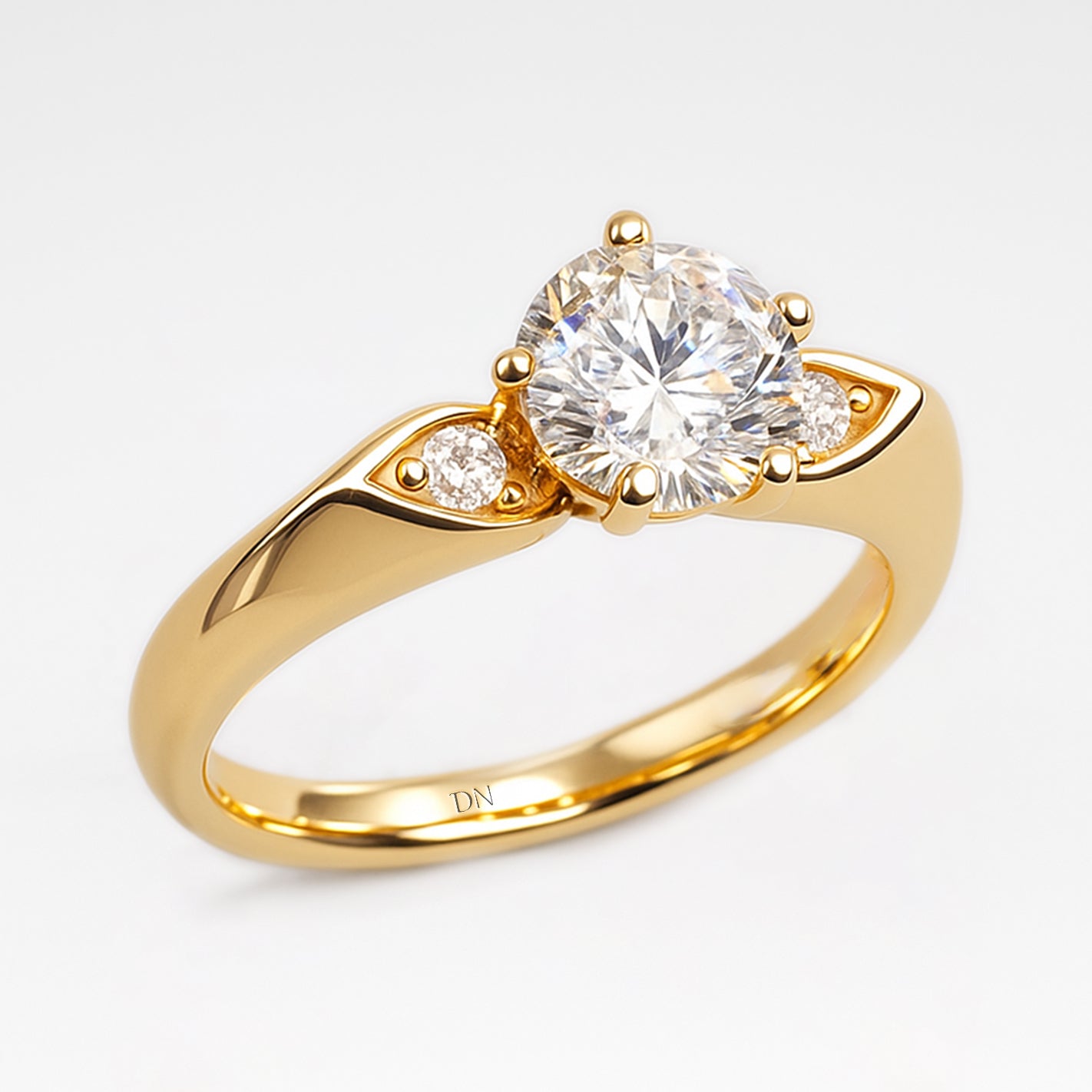 Elegant and refined, the Maeve ring features a round lab-grown diamond flanked by sculpted side motifs inspired by marquise silhouettes. Nestled within the softly contoured band, the accent stones add a subtle sparkle and vintage charm. With its graceful symmetry and poetic detailing, Maeve evokes timeless romance with a modern touch.