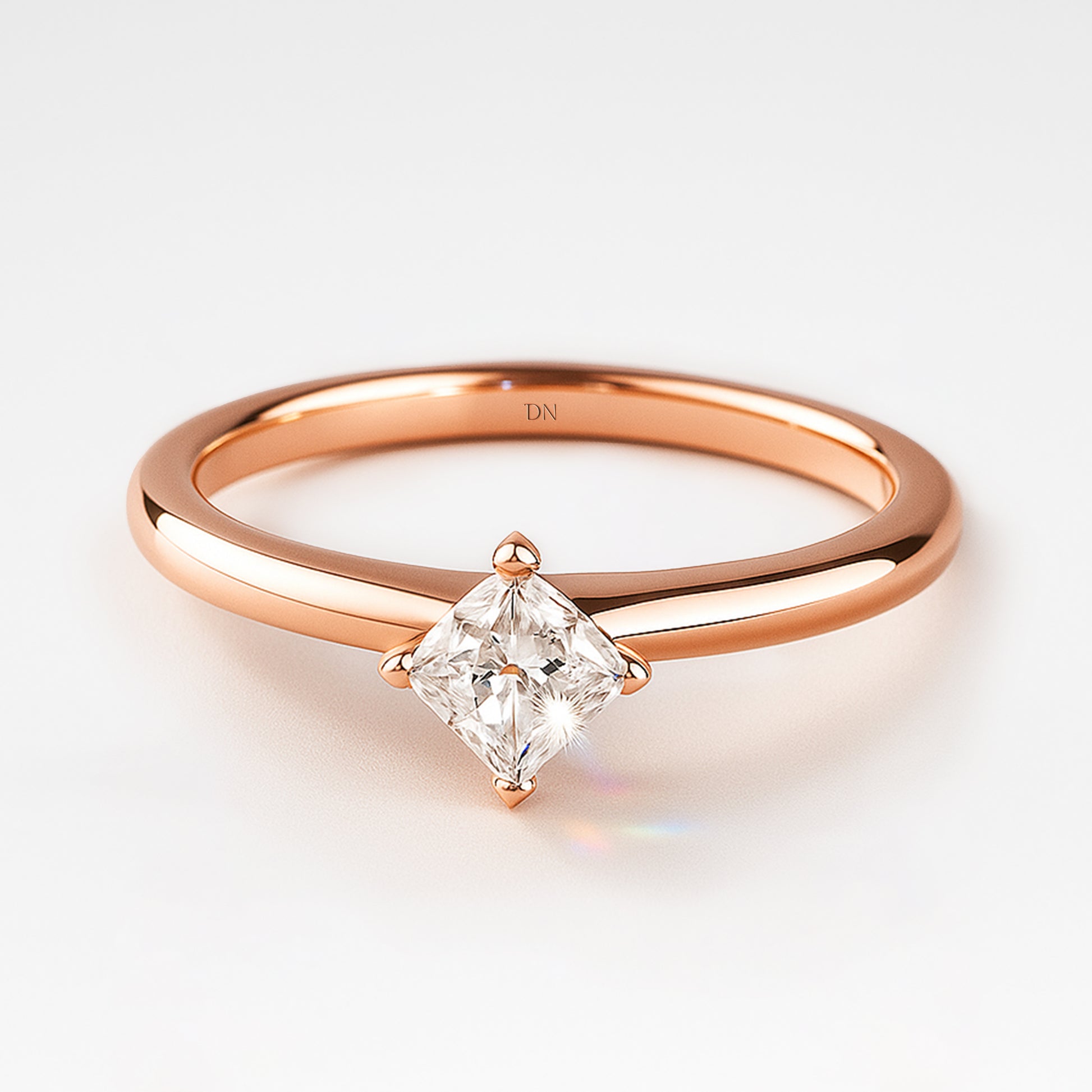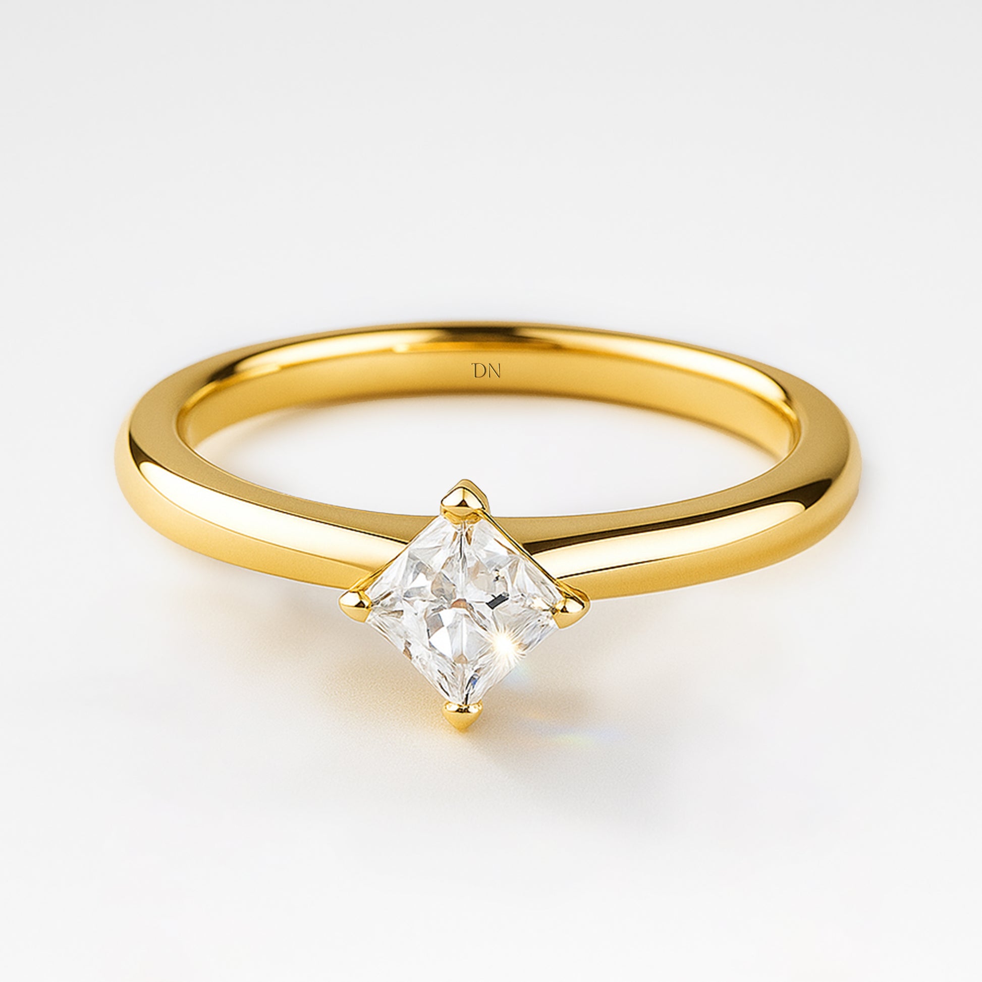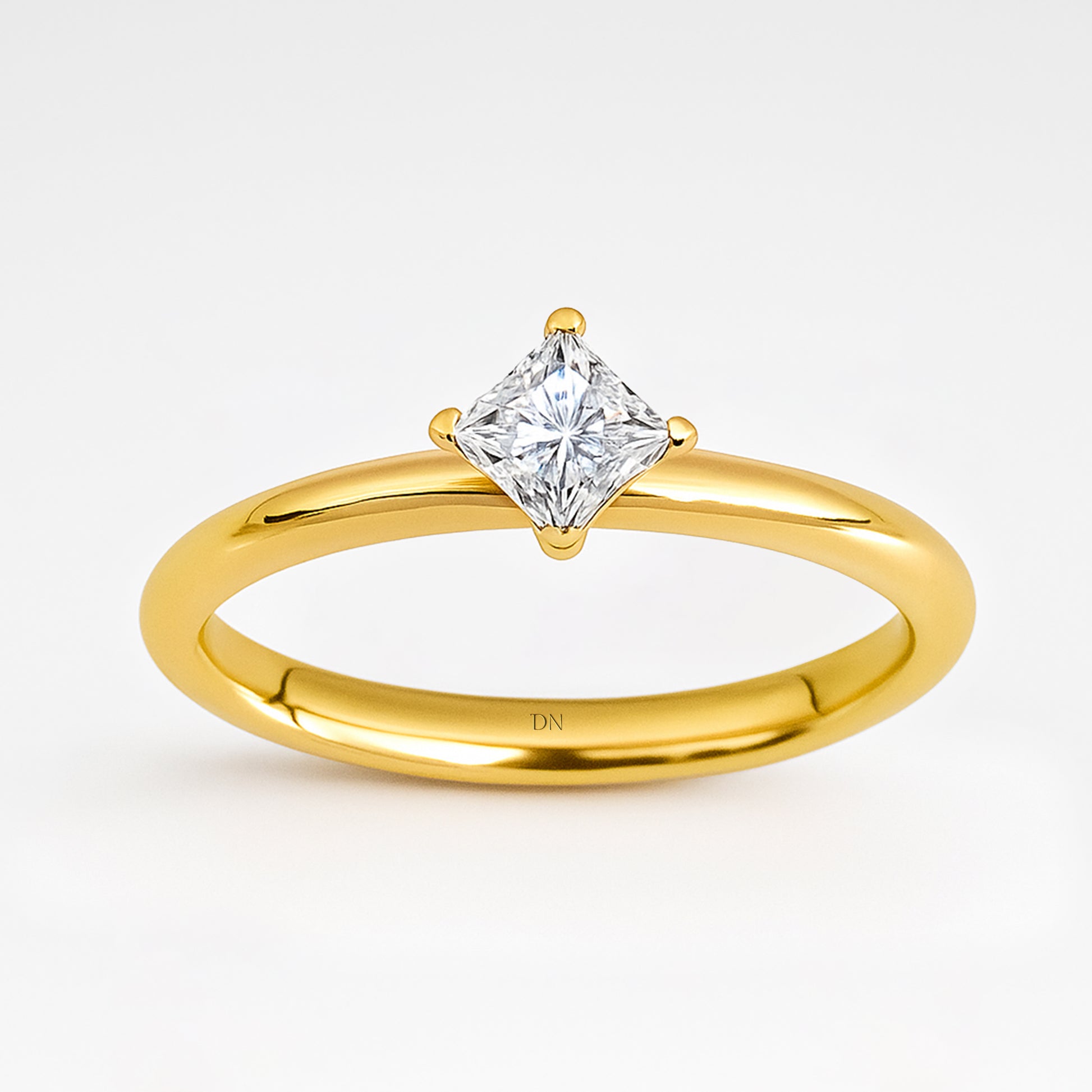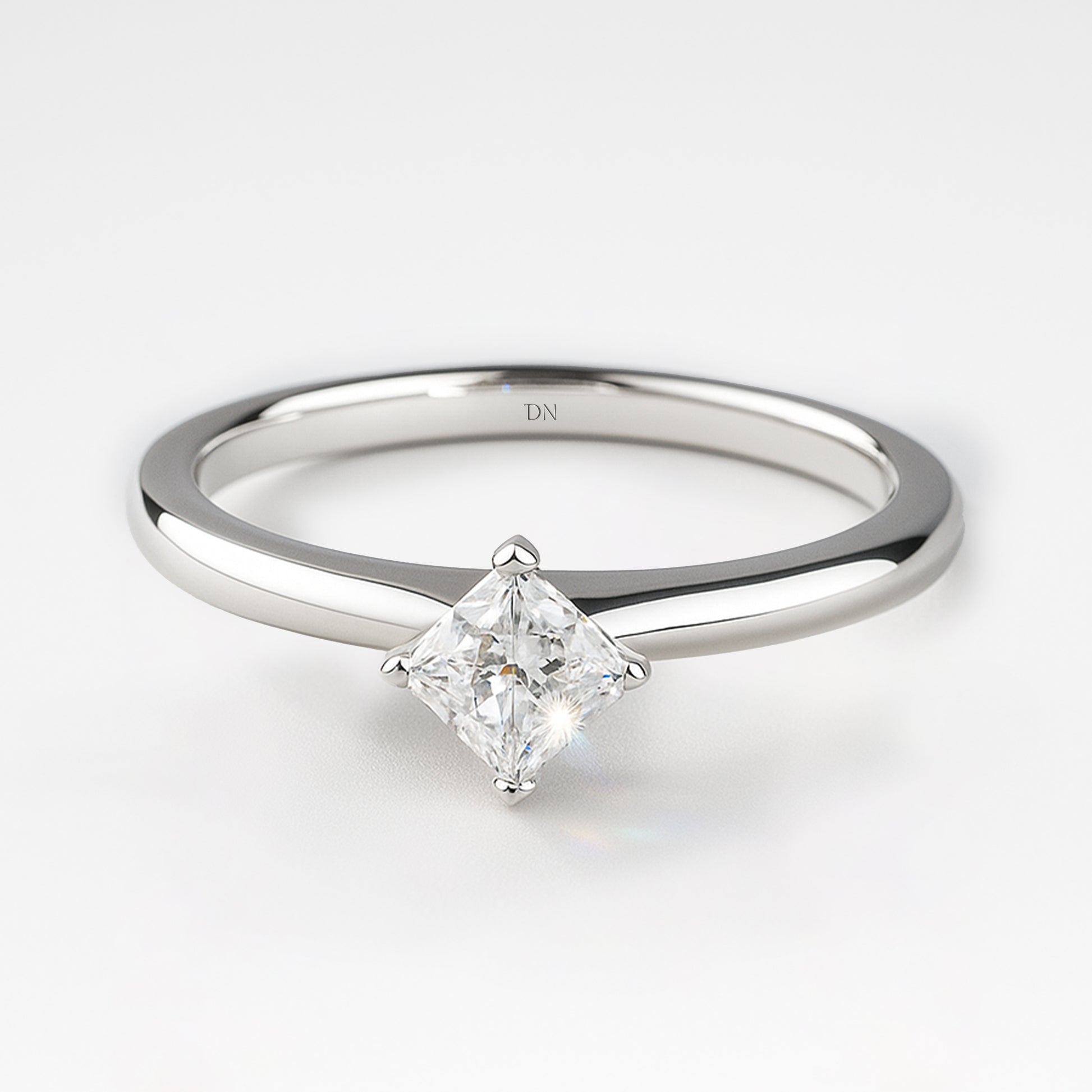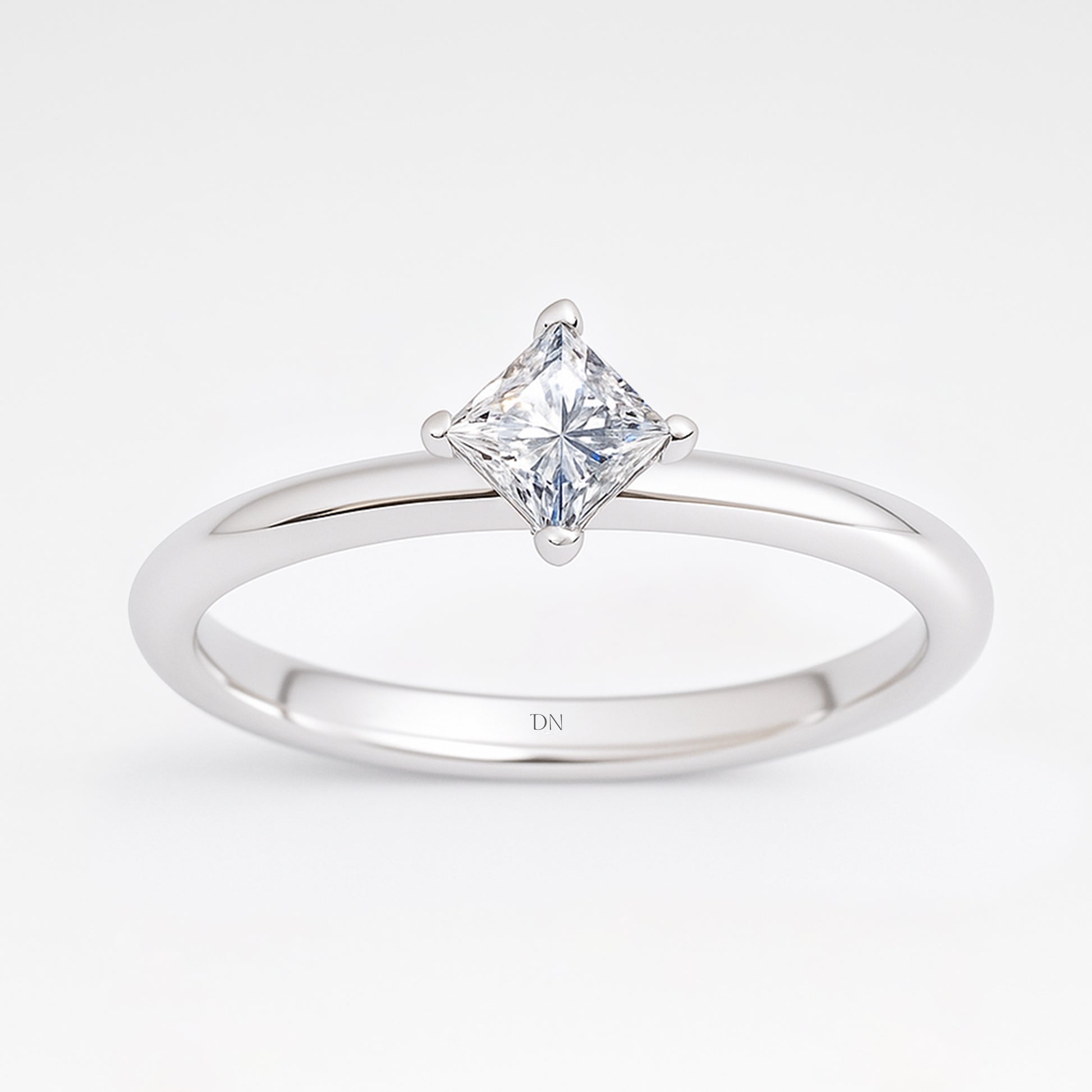 Odette 0.30ct Princess Cut Lab Grown Diamond Petite Ring. Chic and timeless, the Odette ring features a 0.30ct princess cut lab grown diamond set on a slim, polished band. With clean lines and a softly modern edge, it’s a refined everyday piece that brings quiet brilliance to any moment.