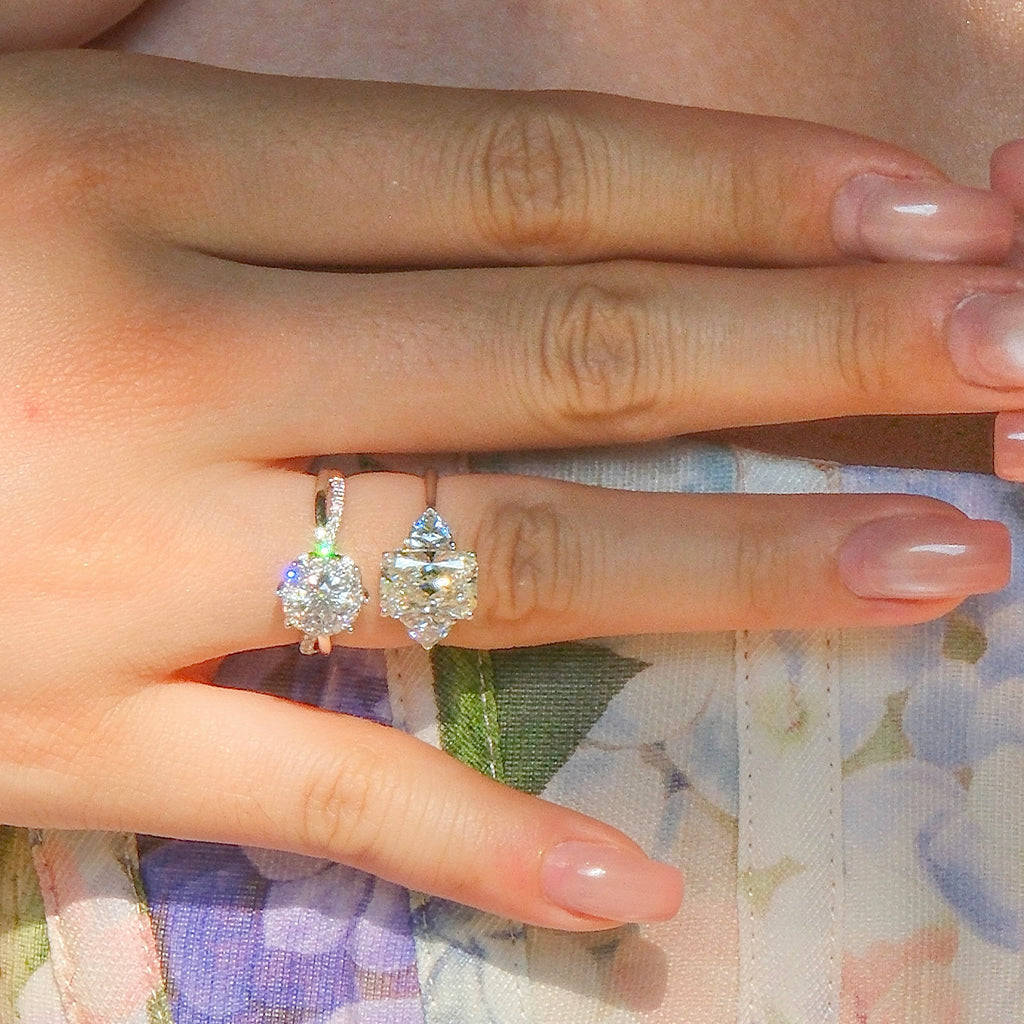Through extensive testing, we found that E – VS – VG diamonds provide the closest visual match to natural diamonds. The slightly warmer color and softer brilliance mimic what you'd expect from high-end natural stones—without looking overly “perfect” or glassy like many lab-grown diamonds.